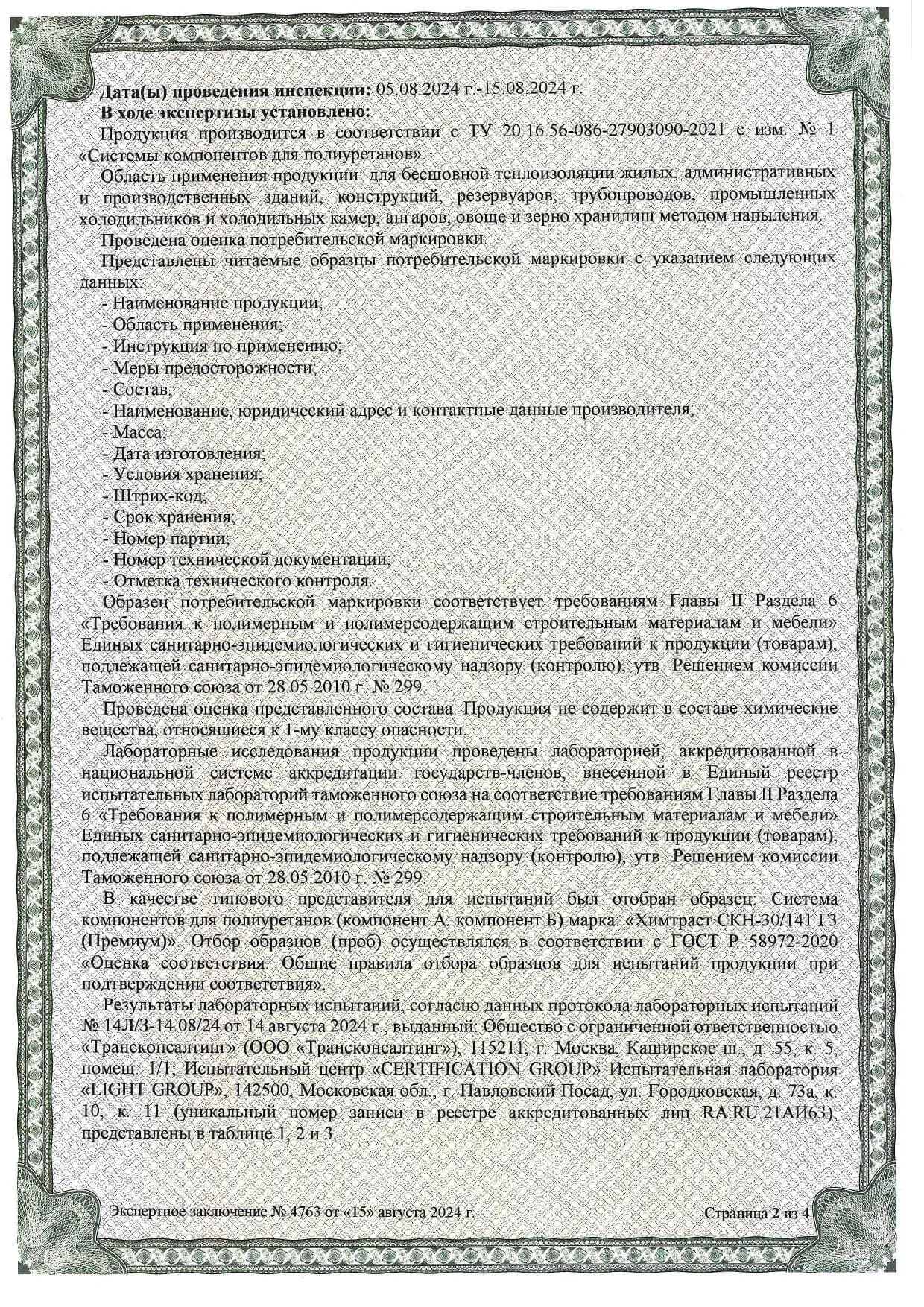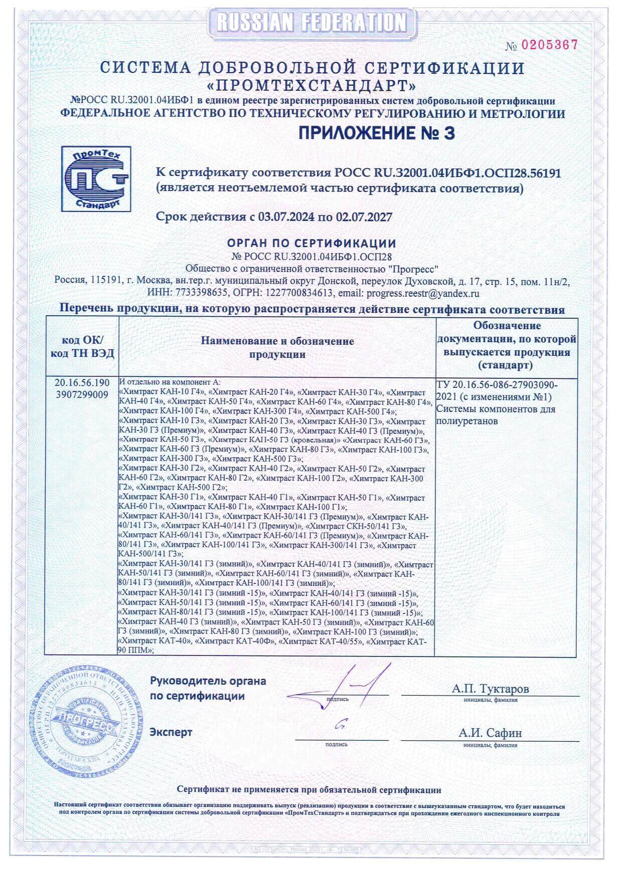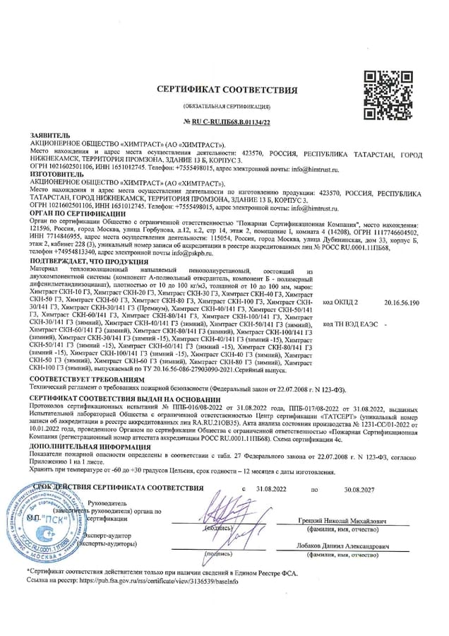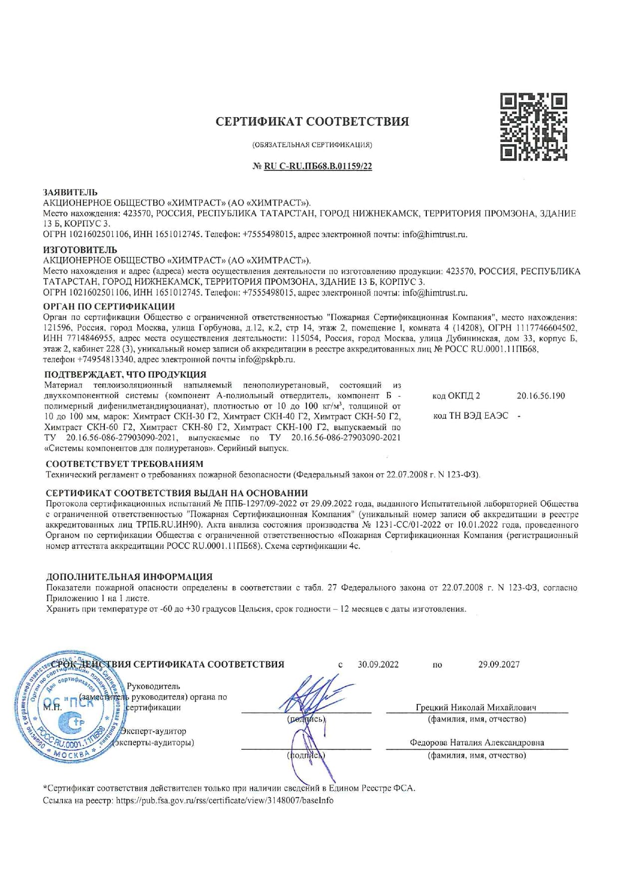 Сертификат соответствия на "Химтраст Краску Пенополиуретан"